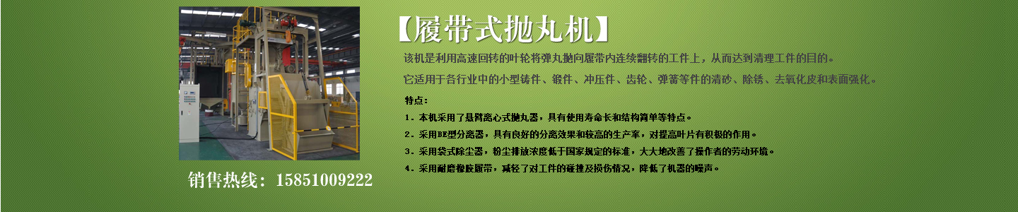 公司主要產品有各種型號拋丸機、履帶式拋丸機、吊鉤式拋丸機、懸鏈式拋丸機、通過式拋丸機;各種型號鑄鋼丸、鋼砂、合金鋼丸、強化鋼丸、不銹鋼丸;噴砂設備;環保除塵設備;鑄造設備;高效拋丸器;各種型號拋丸機配件等,并可根據用戶產品及產量需求設計符合要求的拋丸機;本公司產品從設計、開發、生產到服務,全過程實行監控,其產品在全方位立體的營銷服務網絡中,遍布全國各省市區。